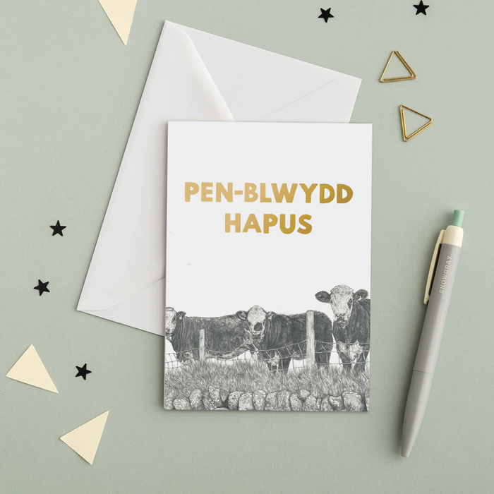 Birthday card 'Penblwydd Hapus' Cows - Lleucu Howatson