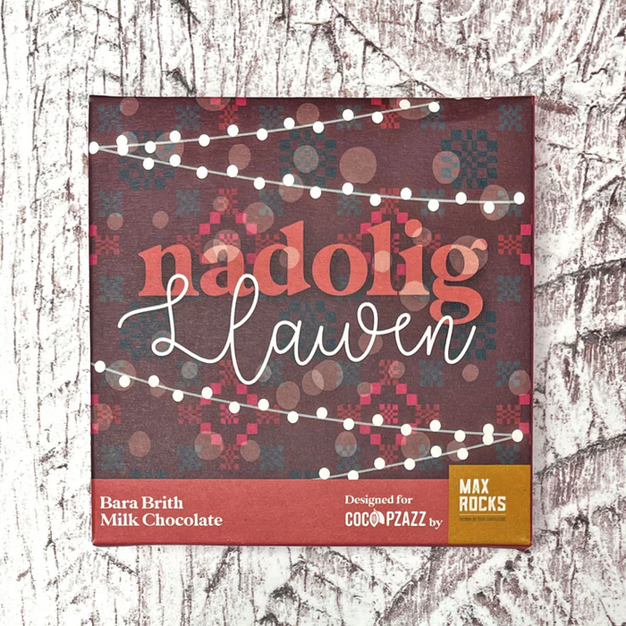 This beautifully illustrated chocolate bar is made from Bara Brith milk chocolate, inspired by a Welsh classic with rich fruit and subtle spices.