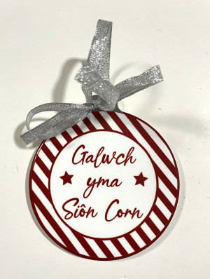 Ceramic Christmas 'Galwch yma Siôn Corn' Bauble Decoration