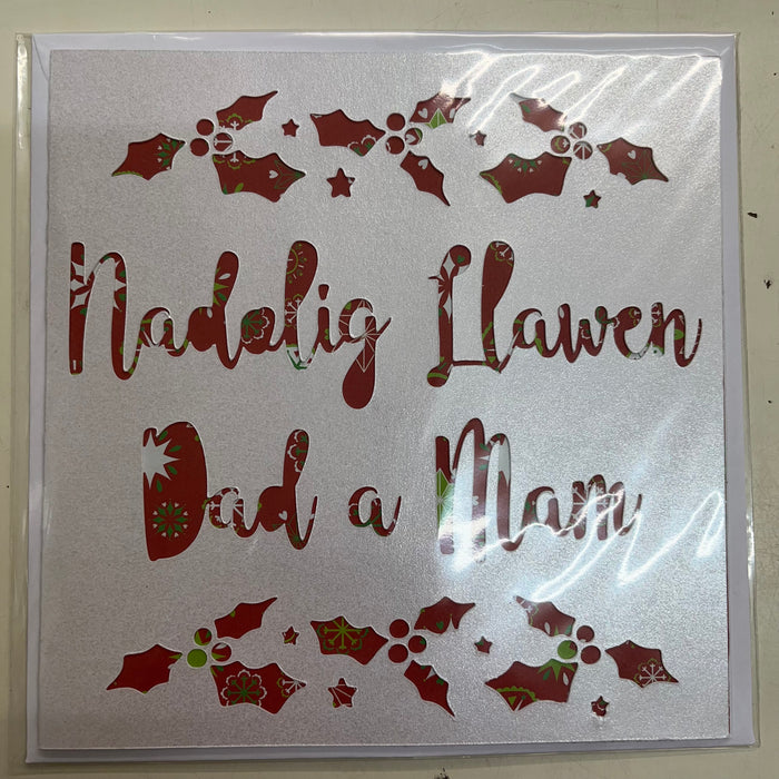 Christmas card 'Nadolig Llawen Dad a Mam' handmade papercut - parents