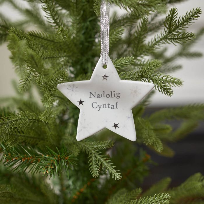 Ceramic Hanging Heart - 'Nadolig Cyntaf' is 'First Christmas' in Welsh