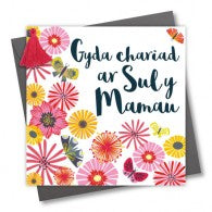 A beautiful bright and vibrant Welsh language Mother's Day card. Designed with colourful floral images and hand finished with a tassel embellishment.