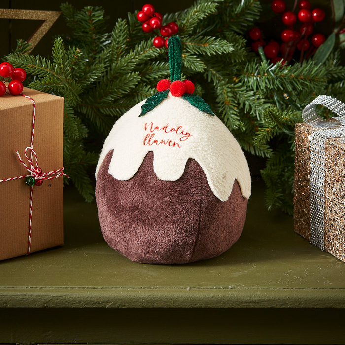 This adorable Christmas Pudding doorstop has a holly sprig and embroidered ‘Nadolig Llawen’ (Merry Christmas in Welsh) detail on the brandy sauce!