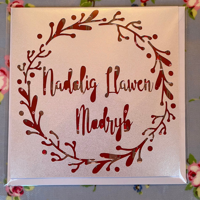 Christmas card 'Nadolig Llawen Modryb' handmade papercut - auntie