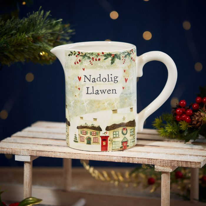 A beautiful ceramic jug with the words 'Nadolig Llawen' meaning Merry Christmas in Welsh.