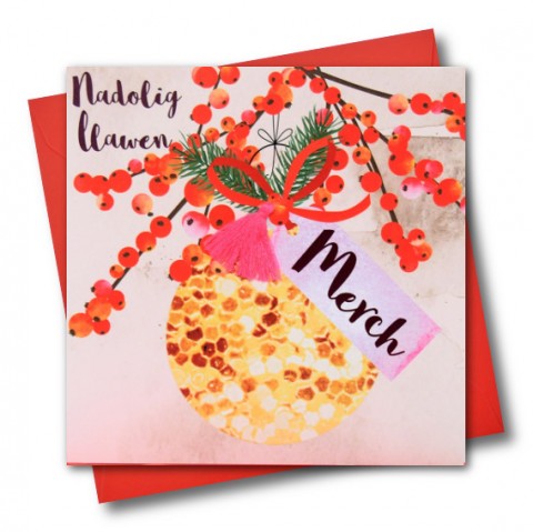 Christmas card 'Nadolig Llawen Merch' - Daughter - Tassel