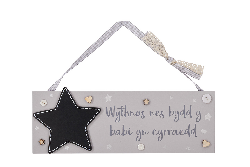 A gorgeous Welsh gift for any expectant parents, especially for any new giddy Mummy to be. This baby countdown hanging sign is the perfect "YEY, you're having a baby" Welsh gift!
