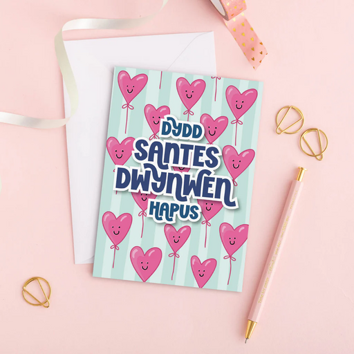 Description Make someone smile on St Dwynwen's Day with this fun card. A colourful card featuring love shaped balloons with smiley faces! 'Dydd Sa...