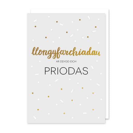 Description A contemporary card to celebrate a Wedding. 'Llongyfarchiadau ar eich Priodas' is Welsh for 'Congratulations on your Wedding'. Detai...