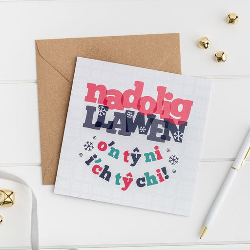 No reviewsDescription A bright and modern card to share your wishes at Christmas. 'Nadolig Llawen o'n tŷ ni i'ch tŷ chi' is Welsh for 'Merry Christmas from o...