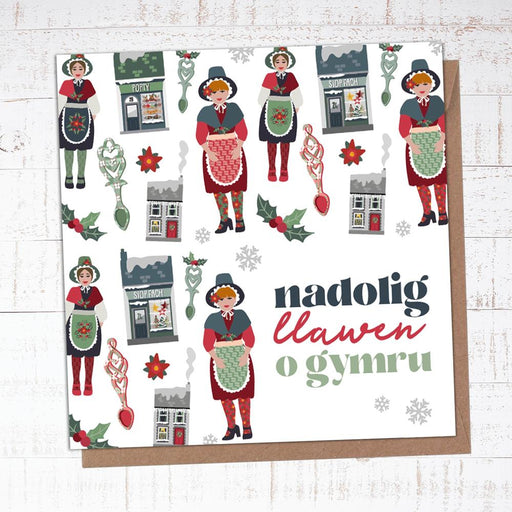 No reviewsDescription A beautiful Christmas card featuring printed Welsh ladies, snowflakes, holly leaves, Welsh wooden spoons and winter store fronts The pe...
