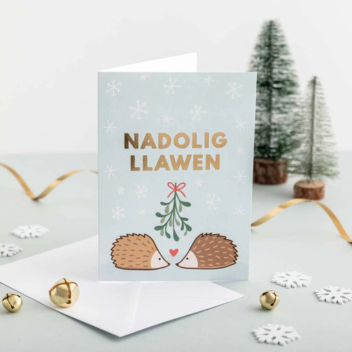 No reviewsDescription A luxury card featuring cute hedgehogs and mistletoe, finished with beautiful gold foil. 'Nadolig Llawen' is Welsh for 'Merry Christmas...