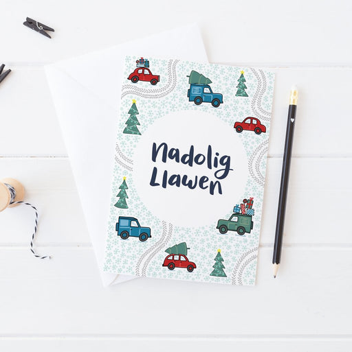 Translation missing: en.product_price.price.original £2.50 - Translation missing: en.product_price.price.original £2.50Translation missing: en.product_price.price.original£2.50£2.50 - £2.50Translation missing: en.product_price.price.current £2.50Christmas card 'Nadolig Llawen' - Cars and 4x4