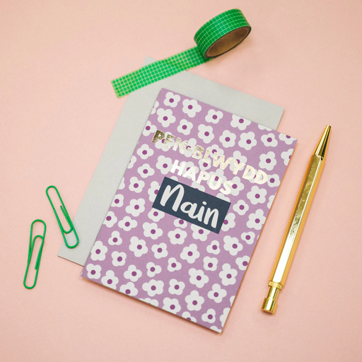 Description 'Pen-blwydd Hapus Nain' is Welsh for 'Happy Birthday Gran' in North Wales. This beautiful vibrant foiled Welsh Language Birthday card i...