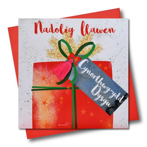 Description Welsh Christmas card with the words 'Merry Christmas [male] teacher' in Welsh, 'Nadolig Llawen Athro'. Details Size: 125mm x 125mm (fol...