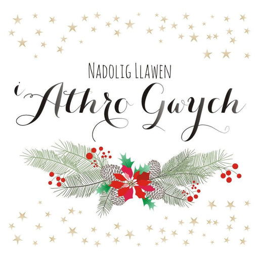 Description 'Nadolig Llawen Athro Gwych' is Welsh for 'Merry Christmas Brilliant [male] Teacher' Gorgeous Christmas greeting card with beautiful bo...