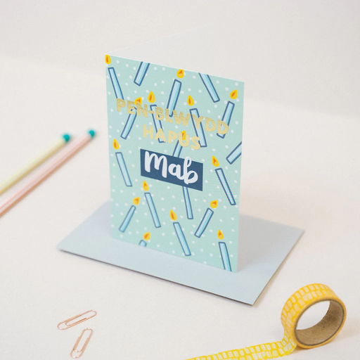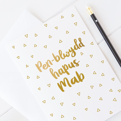 Description Pen-blwydd Hapus Mab is Welsh for Happy Birthday Son. This beautiful vibrant foiled Welsh Language Birthday card is from the amazing Co...