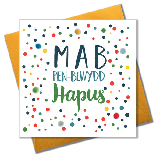 Welsh Birthday card 'Penblwydd Hapus Mab' Son Pompoms