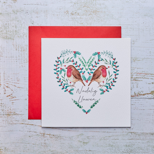 No reviewsDescription 'Nadolig Llawen' is Welsh for 'Merry Christmas' Square paper card with illustration of two robins on a sprig of holly, wearing San...