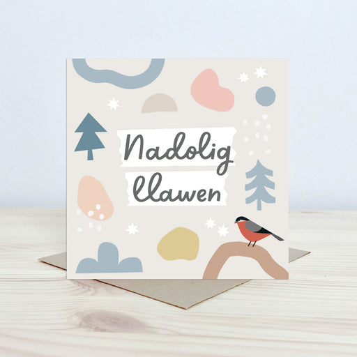 Description A wonderful contemporary Welsh language Christmas card. A mix of bright bolds and pretty watercolours, and hand finished with a tasse...