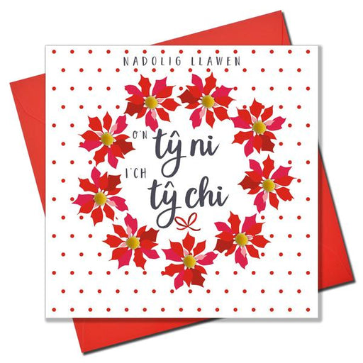 No reviewsDescription Send some Christmas wishes with this beautiful card featuring hand-written text and an original holly wreath illustration. 'Nadolig Lla...