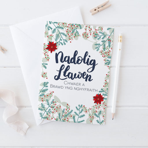 No reviewsDescription 'Nadolig Llawen o'n tŷ ni i'ch tŷ chi' is Welsh for 'Merry Christmas from our house to yours' This beautiful vibrant foiled Welsh Langu...