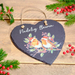 Nadolig Llawen Slate Heart Hanger - Robins with Berries