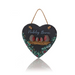 Heart-shaped slate hanger with jute rope, featuring painted green foliage, berries, and 4 pebble robins on a branch. Includes text "Nadolig Llawen" on the front.