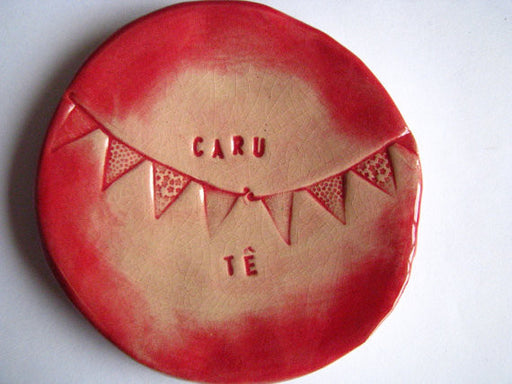A cute little dish with a string of bunting across it, and the words: 'Caru Te' which means 'Love Tea' in Welsh. Perfect for receiving your used te...