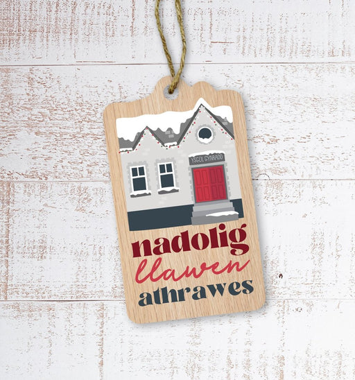 No reviewsDescription "Nadolig Llawen Athrawes" means "Merry Christmas Female Teacher" in Welsh. This hanging decoration features a snowy school scene. The p...