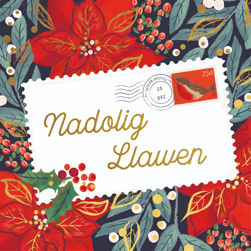No reviewsDescription Image on the front of the cards shows a festive floral design with poinsettias and a stamped and postmarked envelope with 'Nadolig Llaw...