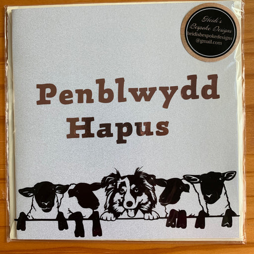 Birthday card 'Penblwydd Hapus' handmade rose gold sheep dog
