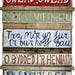 Striking card featuring the chorus of our national anthem painted on driftwood in shades of red, white and green.