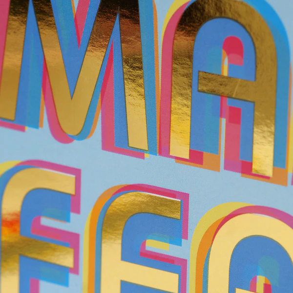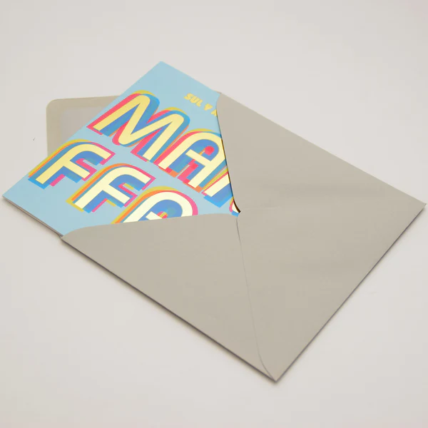 Designed with bright, fun, bold text, and the writing is foiled in shiny gold. Printed on high quality board from sustainable sources with a grey envelope, and each comes in a biodegradable bag.