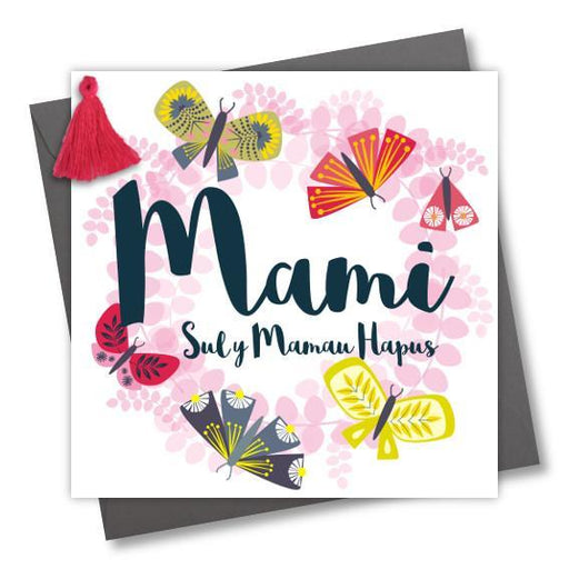 Mother's day card 'Sul y Mamau Hapus Mami' - Happy Mother's Day Mummy - Butterfly & Tassel