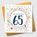 A beautiful modern Welsh language greeting card for that very special 65th birthday. The card has a lovely, colourful polka dot design, and is embellished with bright pompoms and printed on high quality white FSC accredited board with a bright gold envelope.