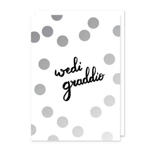 Description Send your best wishes to someone on their graduation. 'Wedi graddio' is Welsh for 'Graduated'. Details Finished with gold foil Blank in...