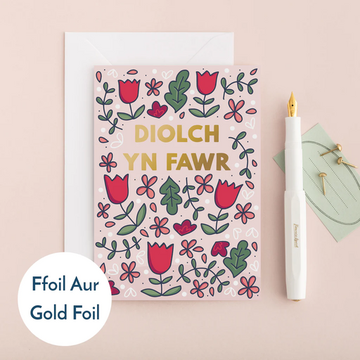 Translation missing: en.product_price.price.original £2.75 - Translation missing: en.product_price.price.original £2.75Translation missing: en.product_price.price.original£2.75£2.75 - £2.75Translation missing: en.product_price.price.current £2.75Thank you card 'Diolch yn Fawr' pink flowers foil