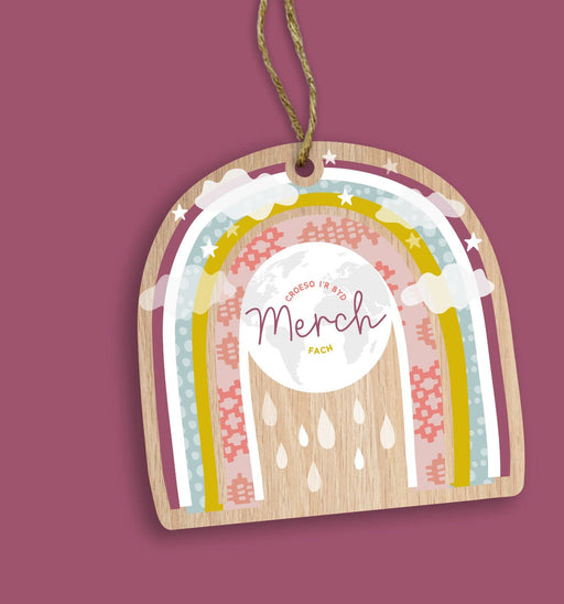 No reviewsDescription A gorgeous wooden gift decoration illustrated with a rainbow to welcome a beautiful baby girl into the world. Croeso i'r Byd Merch Fac...