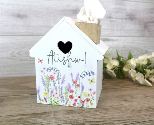 1 reviewDescription Wooden painted tissue box featuring a lovely floral pattern - just add tissues. 'Atishw' translates as 'Bless You' or 'Atchoo'. Matchin...
