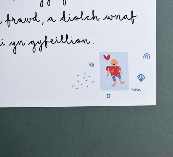 A heartfelt Welsh poem by Sioned Haf Thomas for your Brawd (Brother in Welsh), beautifully illustrated by Heledd Owen.
