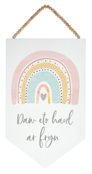 Rainbow pennant banner 'Daw eto haul ar fryn'