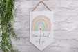 This painted wooden sign will decorate your home beautifully and the colourful rainbow design and words are sure to make you smile!