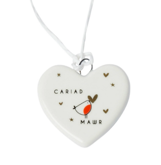 Ceramic Hanging Message Heart - 'Cariad' is 'Love' in Welsh Handmade in North Yorkshire Measures approx 9cm. Please note these hearts are handm...