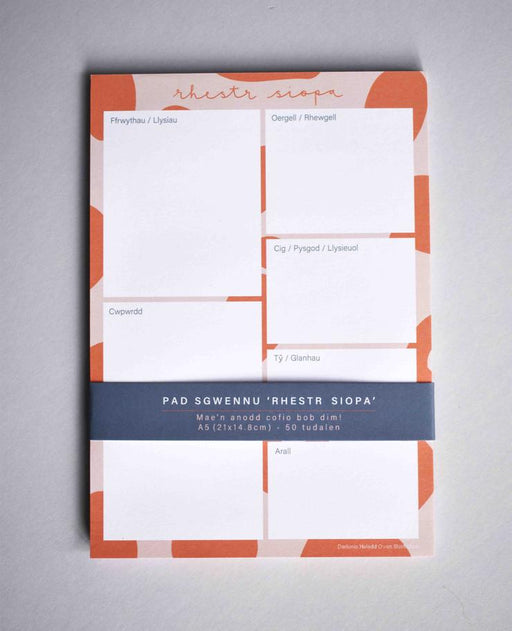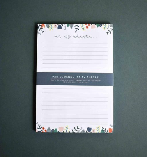 No reviewsDescription A handy note pad with 50 tear off pages and a colourful blue design. 'Ar Fy Rhestr' is Welsh for 'On My List'. This note pad is perfec...