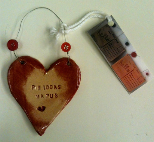 Ceramic Hanging Message Heart - 'Priodas Hapus' is 'Happy Wedding' or 'Happy Marriage' in Welsh Handmade in North Yorkshire Measures approx 9cm...