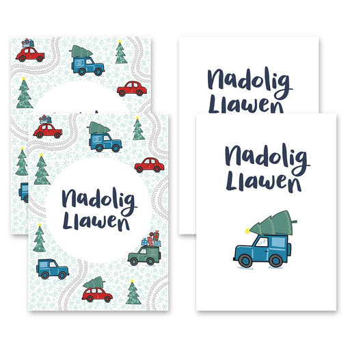 1 reviewDescription A set of 4 cards with a colourful Land Rover and cars design. 'Nadolig Llawen' is Welsh for 'Merry Christmas'. Details 2 of each car...
