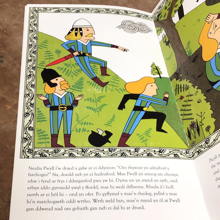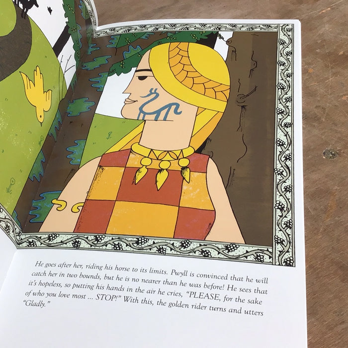 This book is a graphic representation of the first branch of the Mabinogion, 'Pwyll and Rhiannon'. The book aims to introduce children and young people to the stories of the Mabinogion and retell these highly visual and emotional stories to modern audiences, using artwork derived from real historical artefacts.