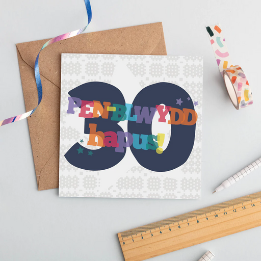 Description This pretty card is perfect to wish happy birthday. 'Pen-blwydd Hapus 30' is Welsh for 'Happy 30th Birthday'. Details Size: approx 15cm...
