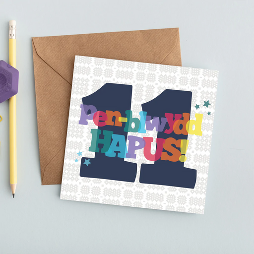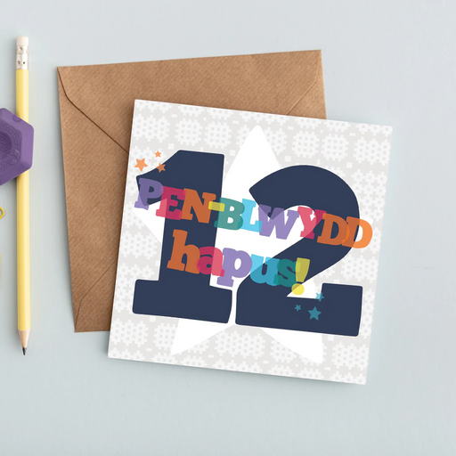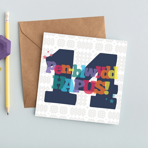 Description This colourful card is perfect to celebrate a special thirteenth birthday for a thirteen year old! 'Pen-blwydd hapus' is Welsh for 'Hap...